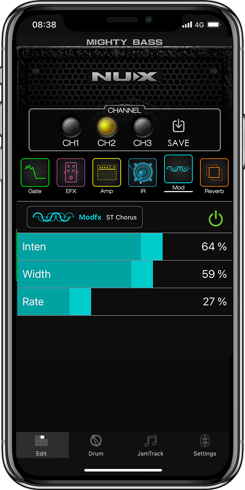 Mighty Bass 50BT's Bluetooth can do more than just audio playback. You can also control the amplifier with the MightyAmp mobile application. There are loads of Amp Models, Bass Cabinet IRs, and effects available with our FREE MightyAmp APP. The best part is that you can save all the parameters to each channel for future use. Download the Mighty App Here